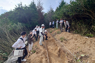 - 検討委員会では、発掘調査現場の視察を行い、その後、此瀬町公民館にて基本計画の策定について、並びに発掘調査成果と園路整備について等が話し合われました。